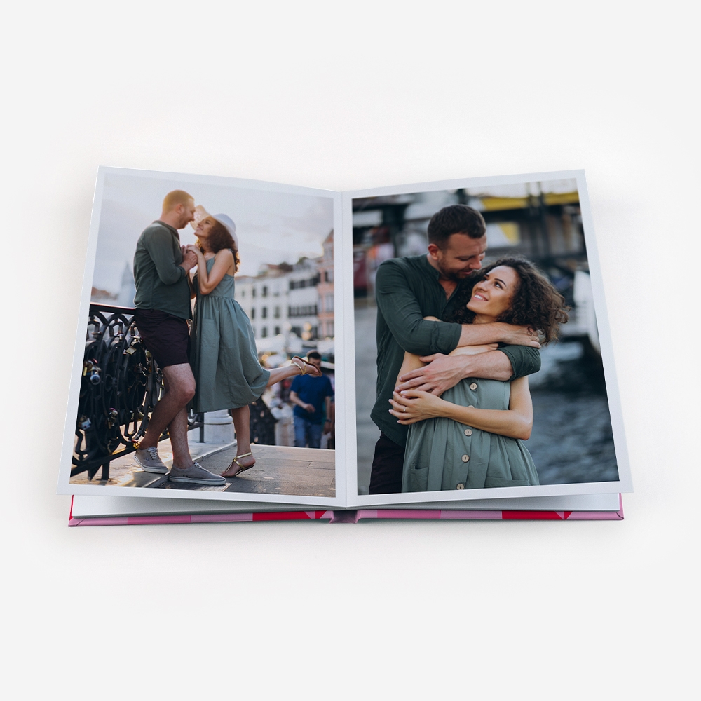 Os Álbuns de Fotos Dreambooks apresentam uma abertura panorâmica, com a possibilidade de colocar uma foto em destaque ocupando duas páginas. Desta forma, desfrutarás de uma visualização perfeita das tuas fotos, sem cortes ou partes escondidas.